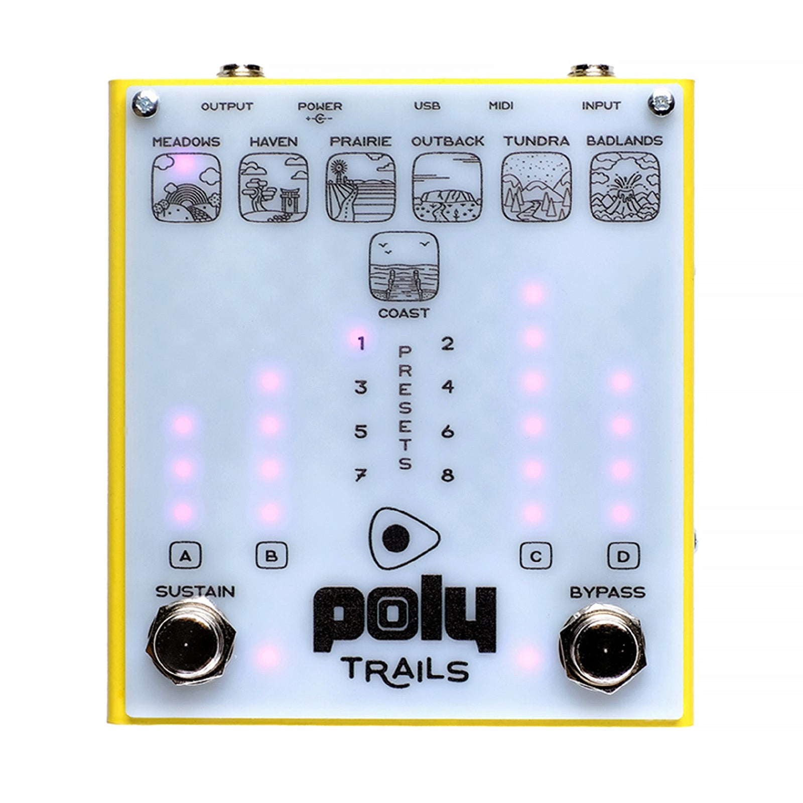 The Poly Effects Trails is a truly unique stereo multi effects pedal built for players who want to explore evolving textures and unconventional sound design.